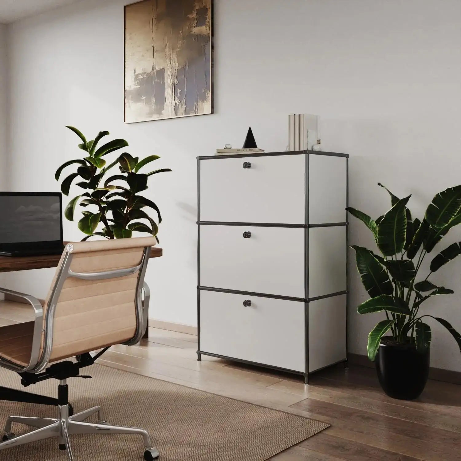 White chest of drawers with 3 drawers – Black chrome