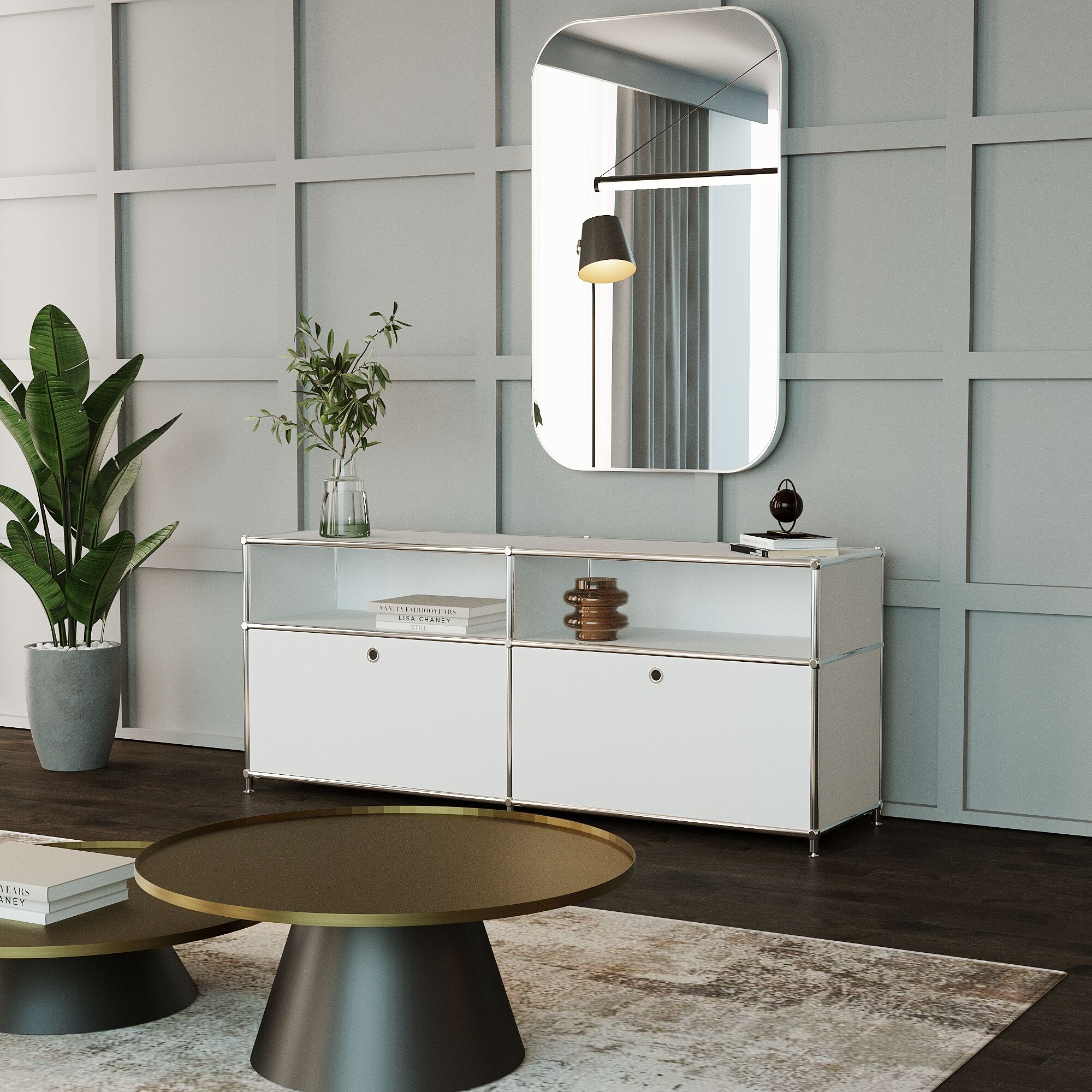 This compact sideboard is one of the most popular storage solutions Its compact size, timeless color scheme and various storage compartments make it extremely versatile and easy to integrate tastefully into any room.